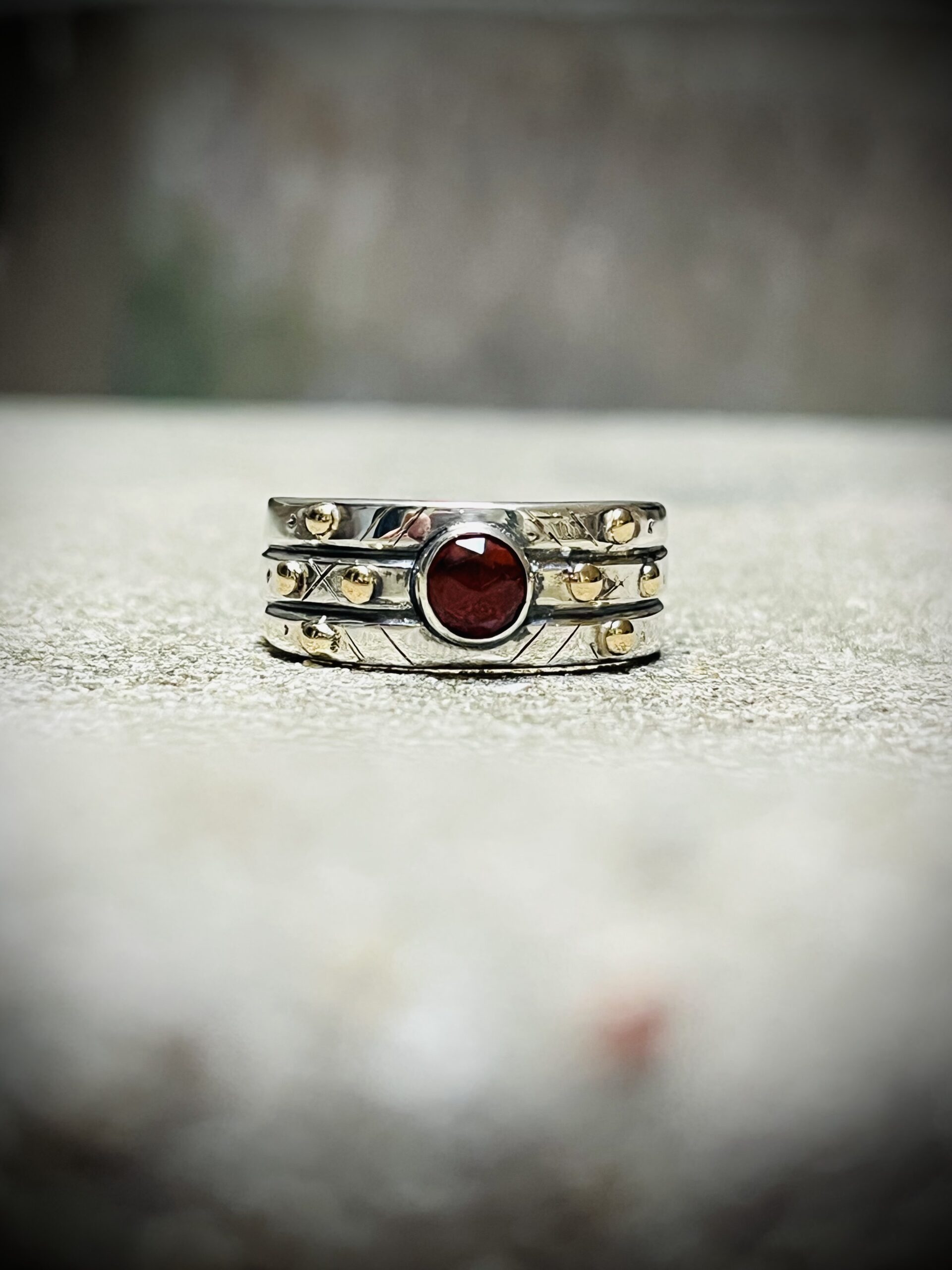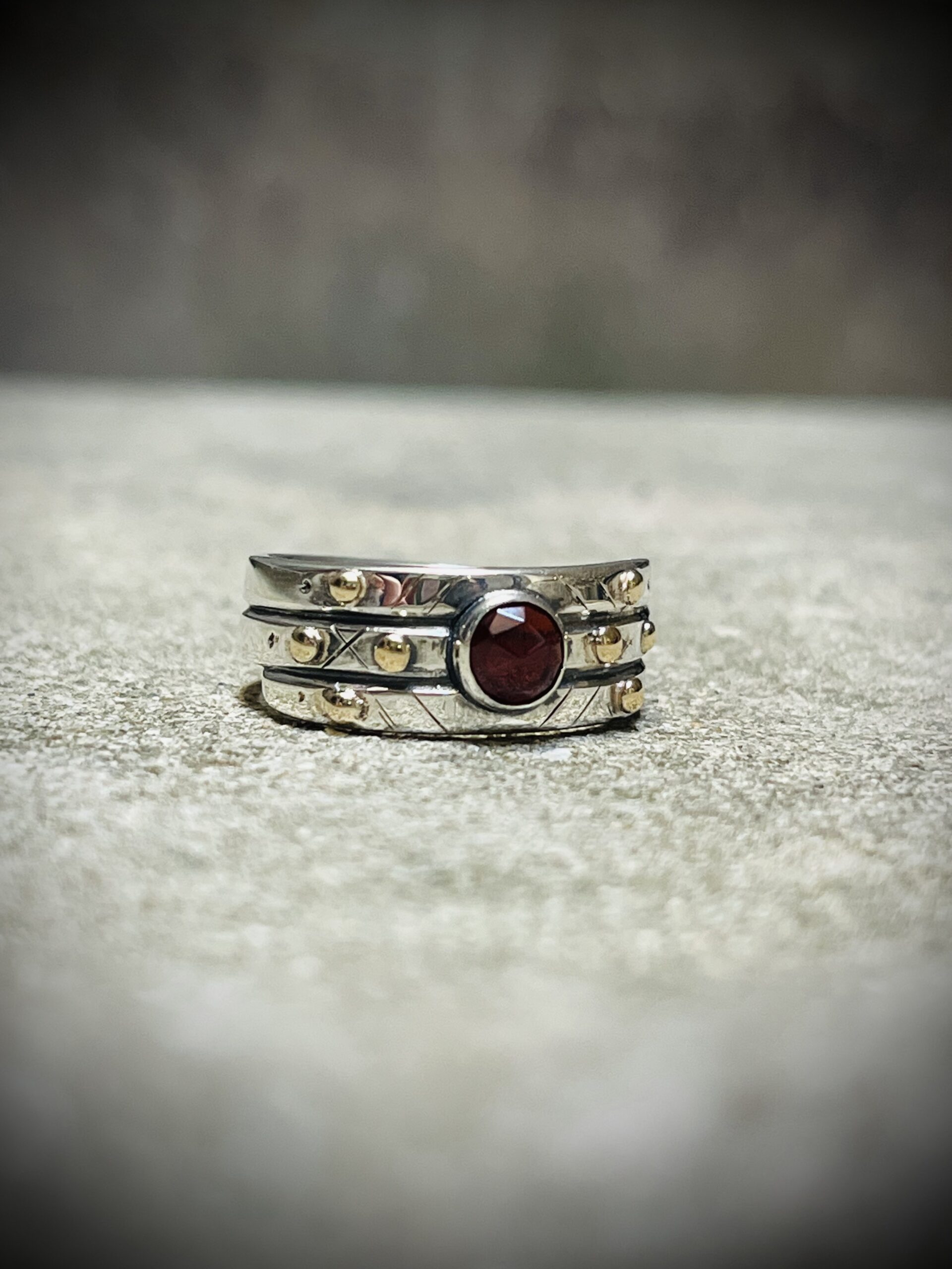 Bague en Argent 950 oxydé et Or 14k